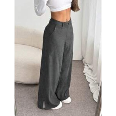 Flirla Women's Casual Loose Straight Leg Maxi Pants With Side Slit, Corduroy Fabric, Autumn/Winter