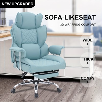 [Ergonomic Office Chair] Ergonooft Fixed Armrests, 3D Wrapping Comfort, Thick 4cm Cushion, Pocket Spring Lumbar Support - Durable PU Leather & Metal Frame for Home or Office Desk